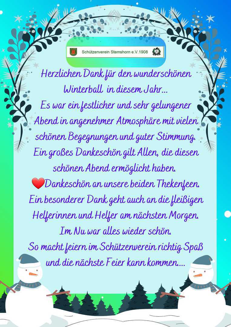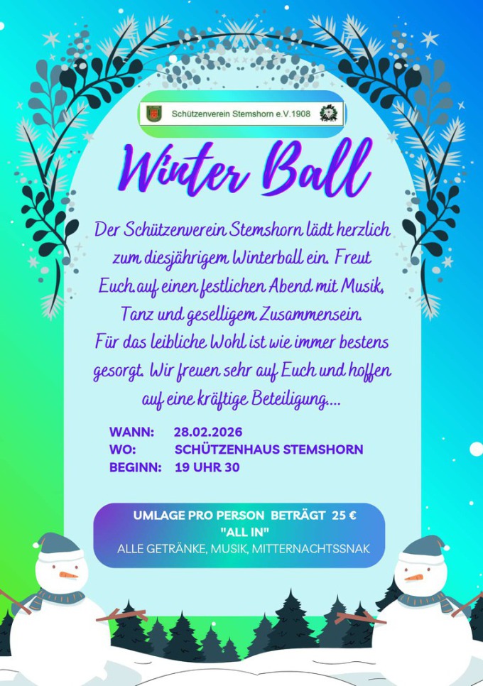 Winterball in der Schützenhalle, Beginn 19 Uhr 30